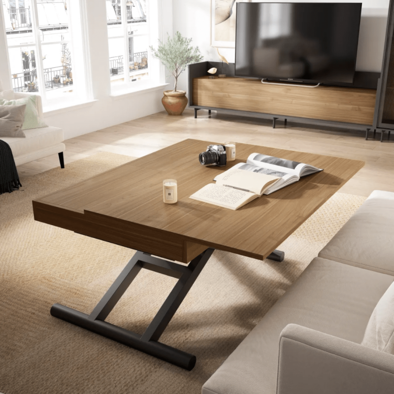 Mesa centro elevable convertible comedor. Colores: Roble, nogal y natural. Más colores consultar